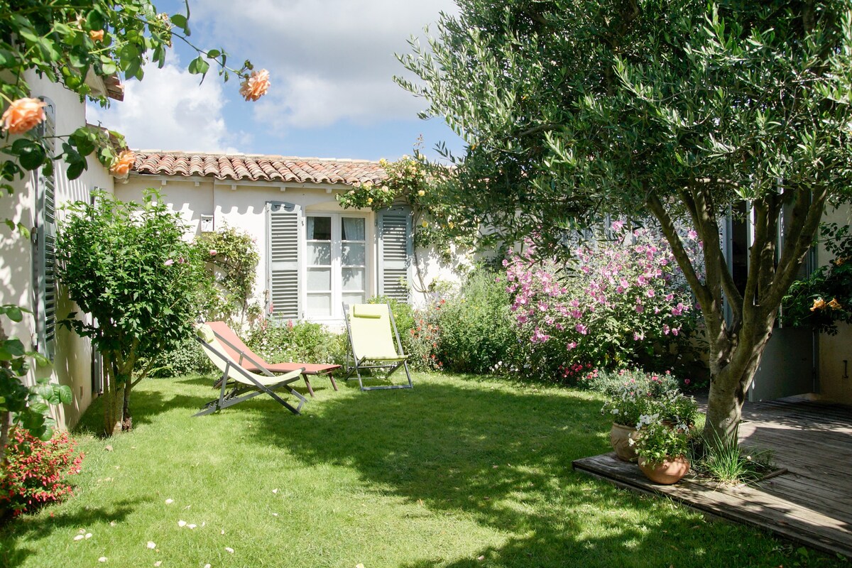 Dans le joli village de la couarde au centre de l'île de Ré, le long de l' impasse des vignes aux folies, maison de 2 chambres,(draps et Linge de toilette fournis), meublée dans le style de l'île de Ré avec un agréable séjour et une cuisine américaine entièrement équipée.Jardin très fleuri, avec transats, et terrasse pour prendre vos repas à l'ombre des oliviers. Au coeur des pistes cyclables, à 300m de la plage, des commerces et de l'arrêt du Ré bus. Repos dans ce quartier très calme.