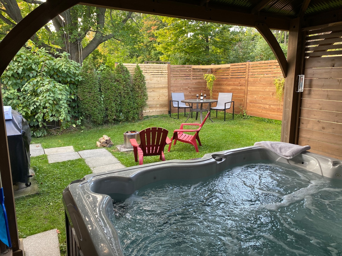 The art of slowing down in a historic home built in 1878, which has preserved all the charm of another era, with original wood floors that gently creak underfoot. Nestled in the heart of the picturesque village of Sainte Pétronille. Enjoy the spa and wood burning stove after a day exploring the island’s renowned vineyards, cideries, farms and local artisans. Only 20 minutes from Old Quebec. Ideal for couples, families, friends or remote work. EV charger. Fully registered CITQ #303794.