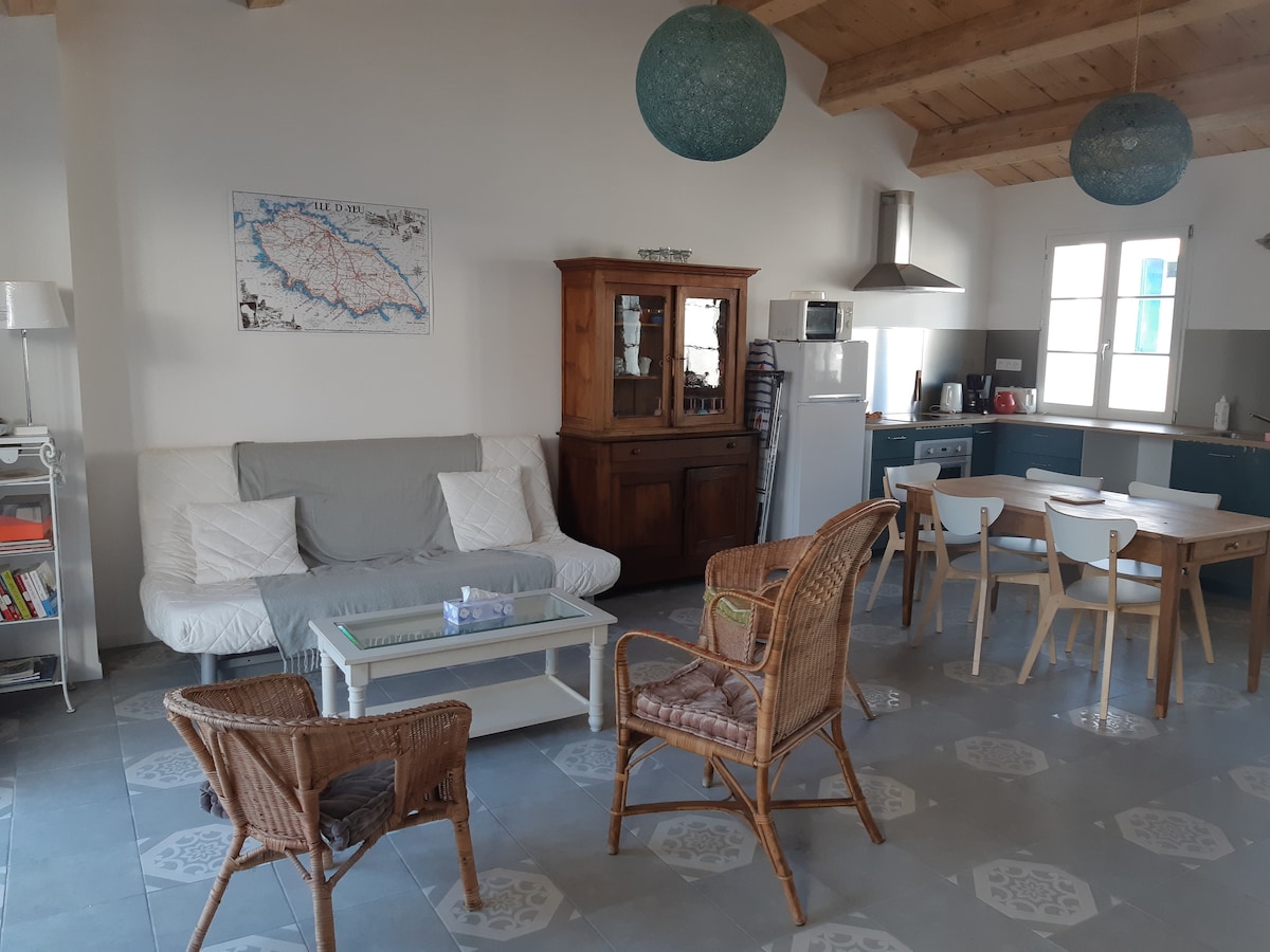 Ancienne maison de pécheur située non loin du port, restaurée en 2011, tout confort, bien équipée, avec terrasse ensoleillée, plein sud. Vous êtes placés à 250 m du port et donc de toutes ses avantages. Une superette "Casino" se trouve à 250 m, à 5mn. La plage St Aubin se trouve à 250 m, et celle de Ker Chalon 250 m plus loin. Les loueurs de vélo sont à 150m. Sur le port, vous pouvez aussi prendre les petits bus qui sillonnent l'île tous les jours. Le loueur de voiture se trouve à 200m.