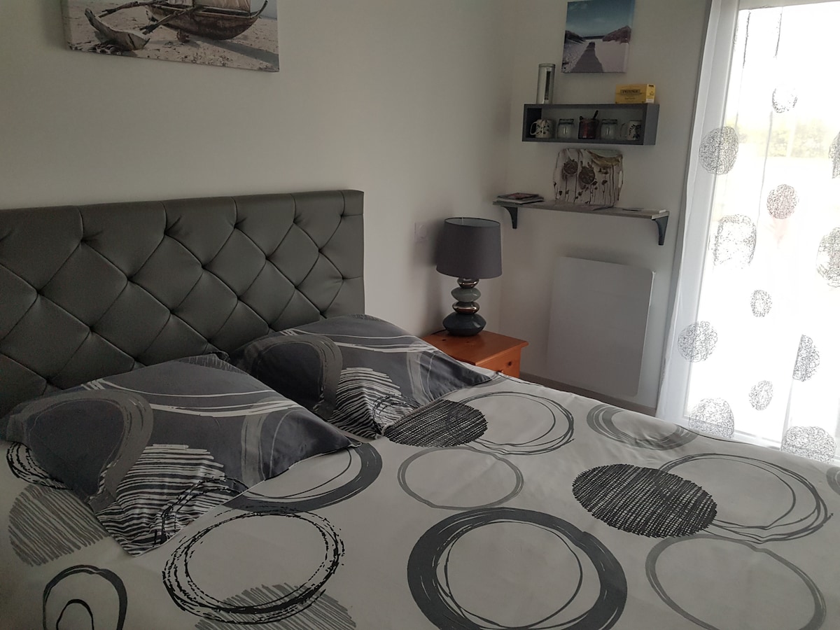 Maison de vacances neuve mitoyenne aux propriétaires, située à 1km200 du port et de la plage la plus proche. 2 chambres, idéal pour un couple et des enfants. Espace extérieur privatif, une terrasse bois et un jardinet avec soleil levant et couchant. Commerces à 850m. Location du samedi 16h au samedi 11h.