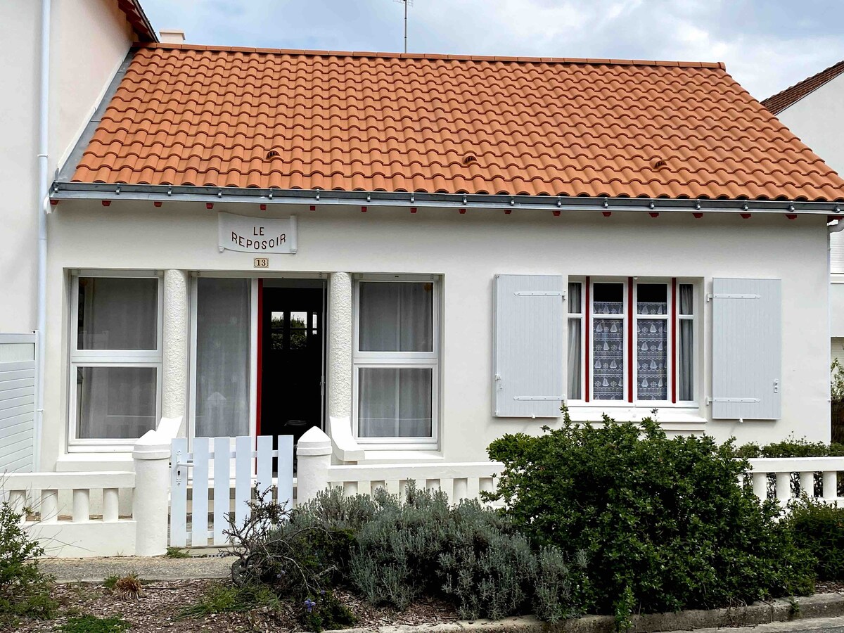 Maison mitoyenne face forêt à 300m de la plage, 100m des premiers commerces (en saison) et à 800 m du centre bourg. Elle se compose ainsi : Cuisine fermée équipée. Salle de bain 2 vasques et baignoire. WC séparé. Chambre avec lit 140 Chambre avec canapé BZ et lit 90 + lit bébé. Grande pièce de vie avec télévision. Petite cour à l'arrière, Salon de jardin et bains de soleil. Parking public sur la rue. Possibilité de télé travailler, équipé de la fibre orange.