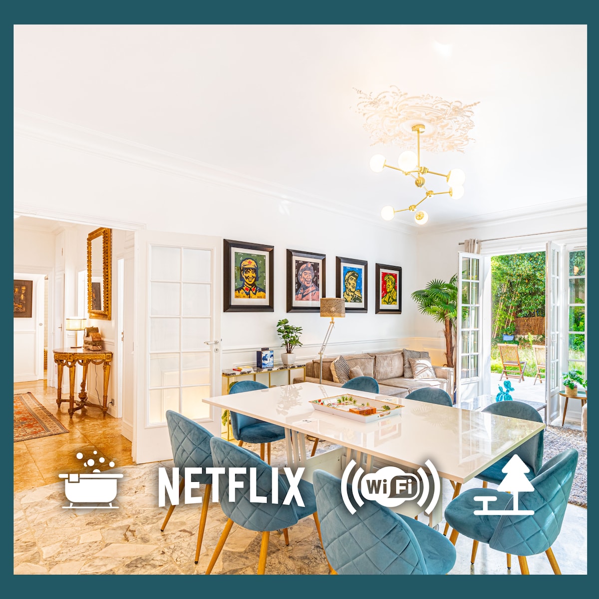 La célèbre "VILLA DES AMMONITES" A seulement 15 minutes du centre-ville, ce magnifique double appartement de 220 m ² et de 8 chambres est l'endroit idéal pour les familles, les amis et les collègues. L'établissement se trouve à moins de 5 minutes de la gare de Bellevue et à 10 minutes à pied du tramway T2. Il est entièrement équipé avec tout ce dont vous avez besoin pour un séjour confortable.