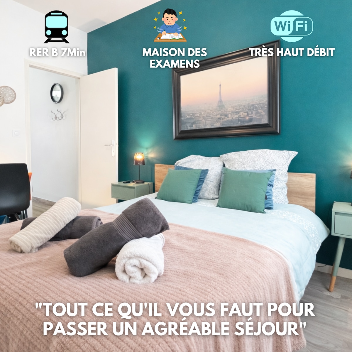Découvrez une suite moderne et élégante, pensée pour vous offrir un séjour confortable et sans contrainte. Idéale pour une nuit en duo ou une escapade de dernière minute, cette suite a été entièrement conçue pour garantir détente, intimité et simplicité. 🎬 Suite cinéma Profitez d’un rétroprojecteur avec accès Netflix, parfait pour des moments cocooning et des soirées cinéma dans une ambiance immersive. 🛏 Literie haut de gamme Dormez paisiblement grâce à une literie Emma premium en 140×190, r