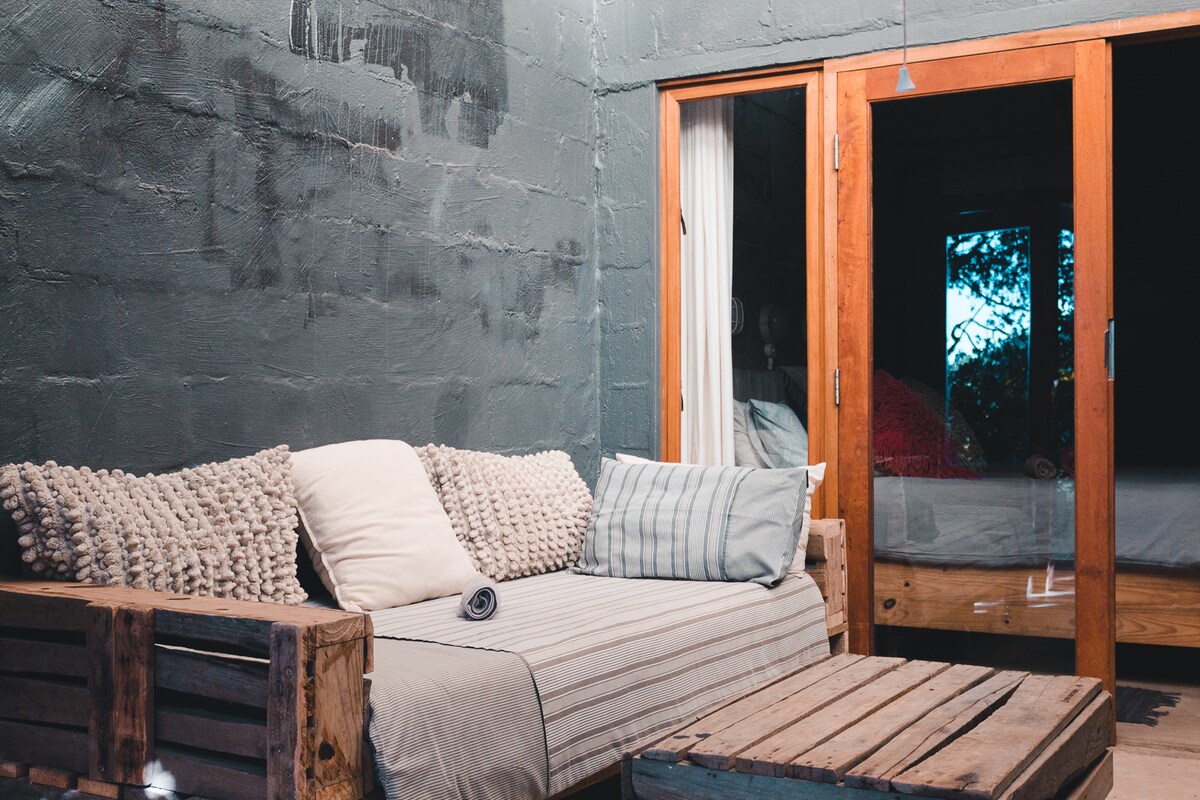 Double bedroom with a queen bed and 2 day sleepers. Bigger that Flying Prawn and Red Herring. This unit is on the front line of the Hatchery. The bathroom is located in the main bedroom and the 2 bedrooms are divided with glass doors and curtains