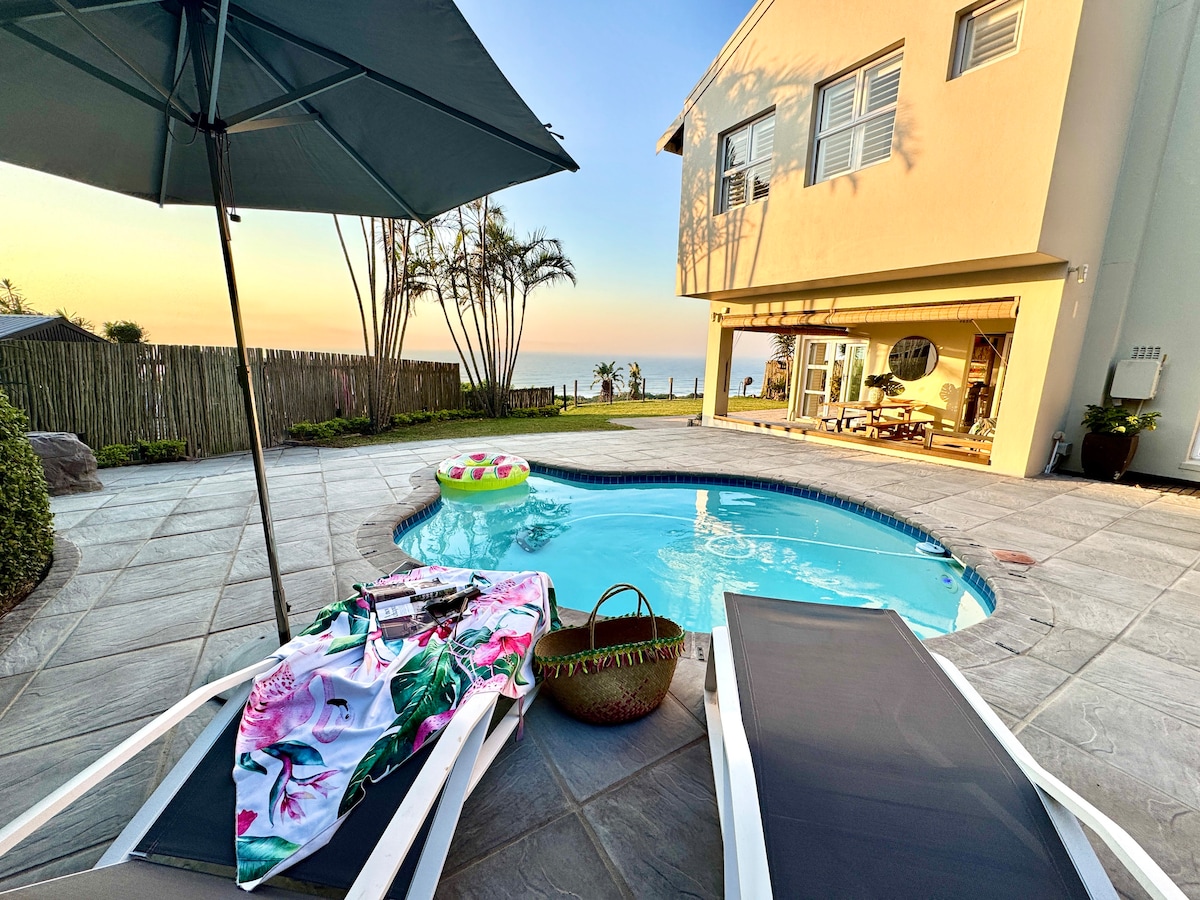 Oceans Paradise is perfectly positioned on the most sought after beach in Shaka's Rock with private access. The house is hidden from beach view as well as neighbors allowing for absolute privacy. There is a magnificent deck that extends over the beach to enjoy the sights and sounds of the ocean. Sleeps 10 adults comfortably. Situated in Shakas Rock right near Granny Pool offering prime beach location. 20 minute drive from King Shaka Int Airport.
