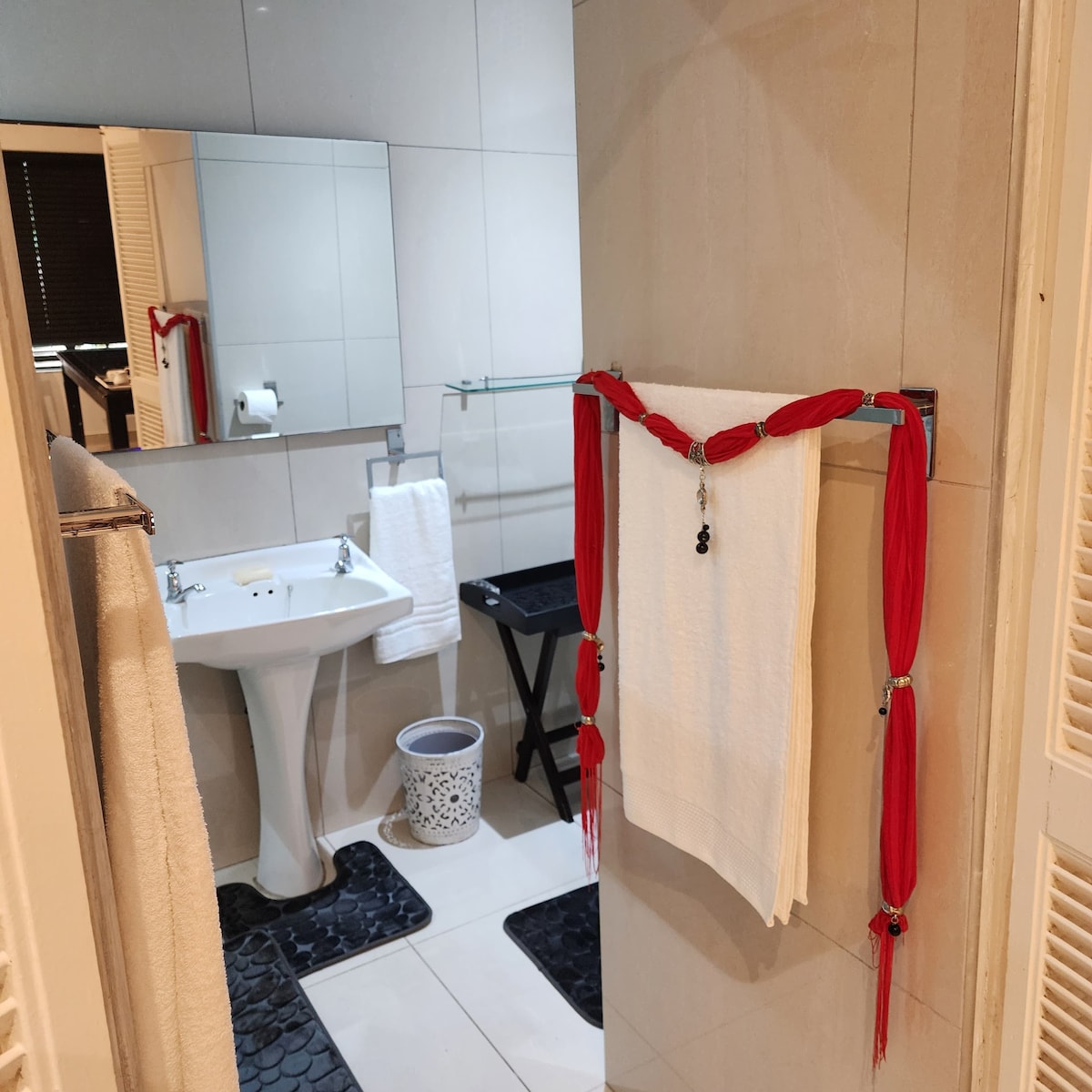 Airconditioned, this non smoking/vaping property is peaceful and centrally-located, ideal for the traveller or business person. No infants or children. This spacious suite is on a shared property with the owner and 1 other tenant in the heart of Westbook overlooking a beautiful indigenous garden with birdlife. 10 minutes from King Shaka Airport, 9kms to Ballito, 8kms to Marine Walk Umdloti and 17kms to Umhlanga. Open secure parking for 1 vehicle.