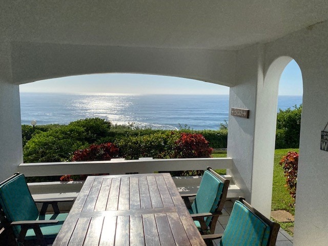 Breathtaking panoramic views of the beach with a spacious entertainment area. Main house with 3 bedrooms and 2.5 Bathrooms, Lounge, Dining room, Kitchen, Patio, Scullery and Entertainment Room. The main bedroom is EnSuite. The cottage has 2 rooms with 1.5 bathrooms. All bedrooms have air conditioning. Entertainment room with pool table, TV and Bar with Aircon. Free Wifi, TV and Gas Braai Facilities. Bring Binoculars to watch the Dolphins playing in the surf.