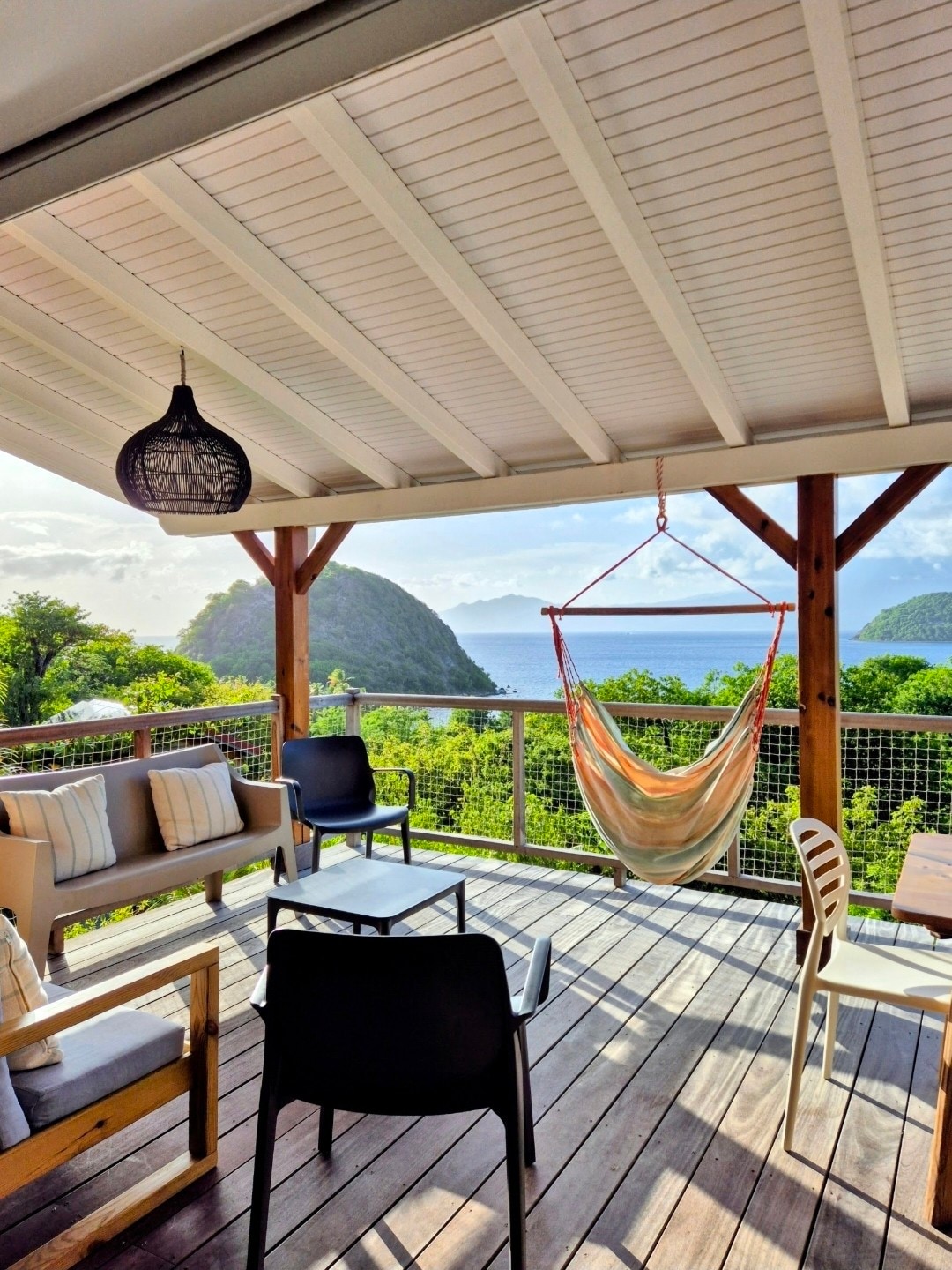 Profitez du cadre charmant de ce logement romantique en pleine nature. Située face à la baie des Saintes réputée l'une des plus belles au monde. Cette case créole est écologique car tout en bois et autonome en eau et en électricité. (eau de pluie et électricité solaire). La douche extérieure à température ambiante dans un cadre végétal vous offrira un dépaysement garanti. La cuisine conçue et meublée dans un esprit créole vous apportera tout l'équipement nécessaire pour un séjour de rêve.