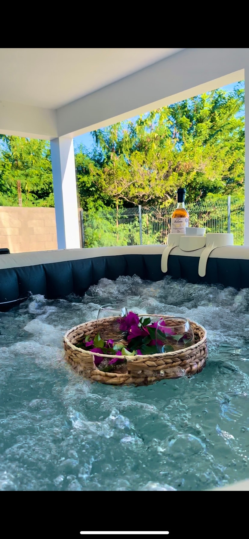 Bas de villa avec 2 chambres communicantes, climatisées chacune, salon et espace extérieur, jardin et spa privatif. Transats et hamac dans le jardin. Balançoire et trampoline accessible. Accès à la piscine de la maison. Adapté aux famille avec enfants et aux couples. Vue mer des Caraïbes et sur les Saintes. A 15 mn de l’embarcadère pour les Saintes. Situation centrale dans Trois-Rivieres avec accès au bourg, à la plage de Grande Anse et aux Bains chauds de Dole à 5 mn en voiture.
