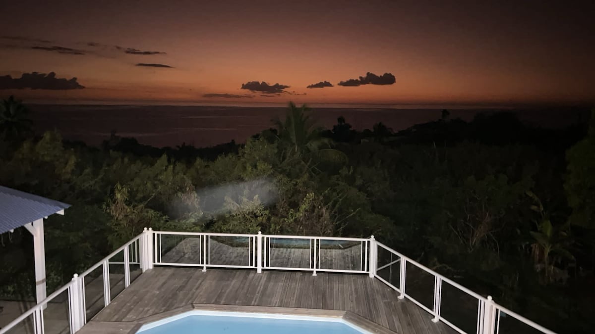 Bungalow indépendant chez l'habitant. En flanc de montage le Houelmont. 5 min de la marina et de la plage de Rivière sens. ville dotée de rivières, chutes, bassins naturels, traces, randonnées dans une forêt luxuriante. 2 chambres, 1 grande terrasse -lits grandes tailles - piscine 10x5m au sel - wifi rapide - espace de travail - cuisine équipée - vaisselle et linge de maison - stationnement devant bungalow - barbecue - terrasse: table, chaises et hamac - brasseurs d'air, moustiquaires