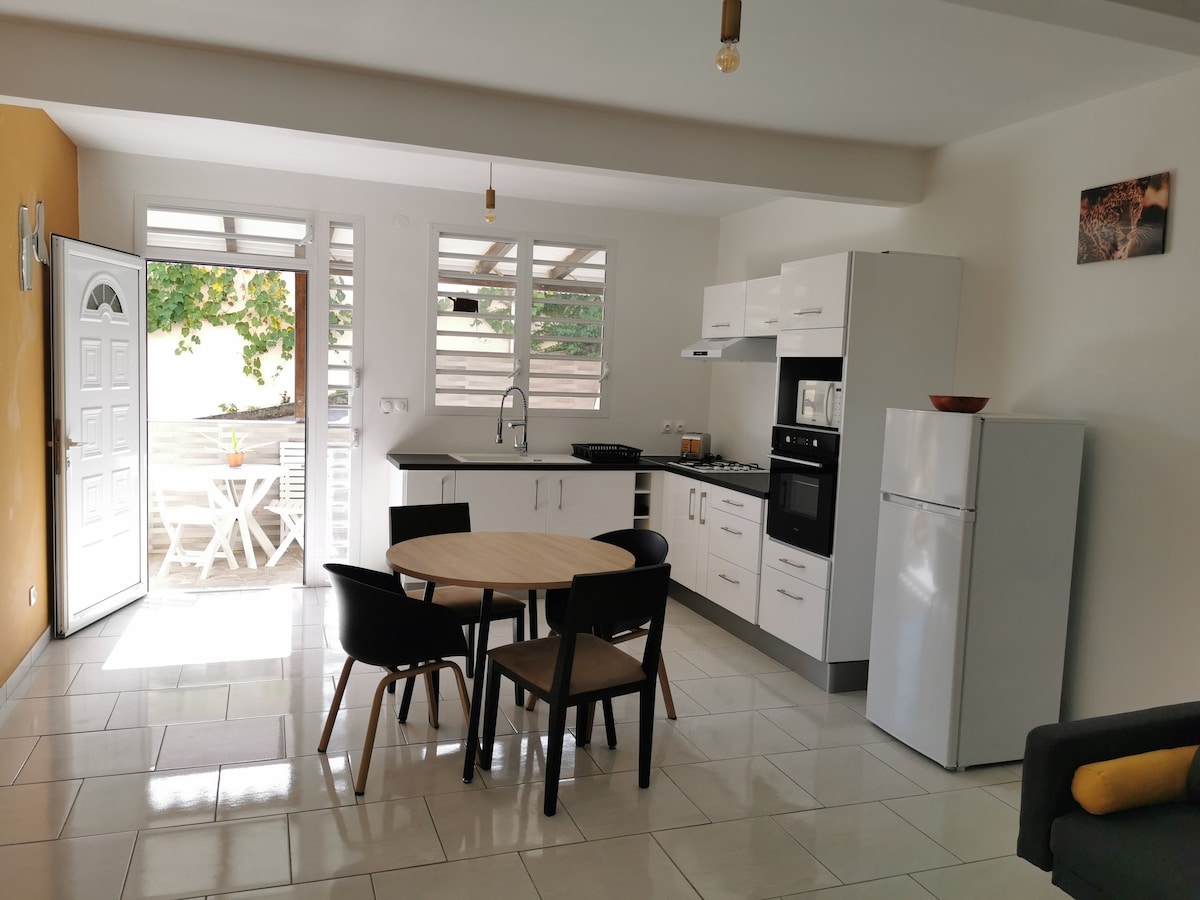Jolie villa neuve, équipée de tout confort, dans une section calme portant son nom dans sa globalité "belle vue" : Vue imprenable sur la mer ainsi que la montagne, de plus bercée par la douceur des alizés. - 5 min de la plage - 15 min des chûtes du carbet - commerces à proximité. Située au centre de l'île permettant un accès facile entre la BASSE-TERRE et la GRANDE-TERRE. Logement parfait pour les couples, les voyageurs d'affaires et les familles (avec enfants).