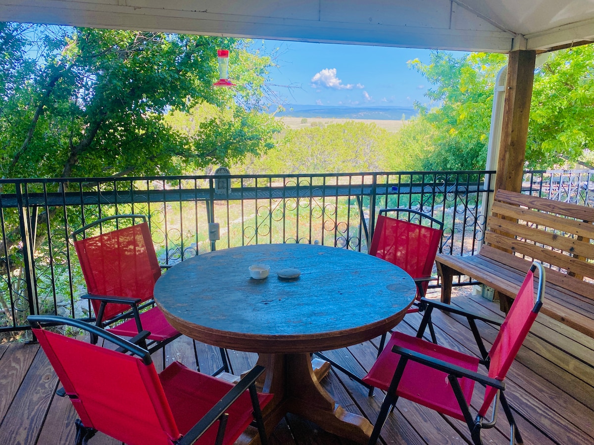 Tranquil countryside retreat on 4 acres of juniper woodland. With 3 bedrooms and two bathrooms, Meadowlark is perfect for families, friends, or work teams. Stunning mountain and farmland views from 2 decks. Just 7 mins to historic Las Vegas, NM, and 1 hr to Santa Fe. Birdwatcher's paradise near wildlife refuge trails (5 mins) and Montezuma Hot Springs (20 mins). Stargaze, hike, unwind. Well-behaved pets welcome ($75 per stay). A peaceful escape to reconnect with nature and yourself.
