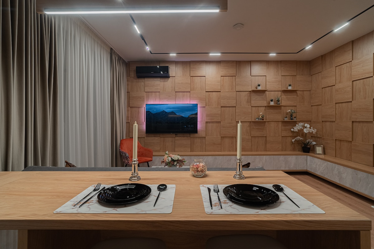 Spacious luxury 40 sqm studio in the heart of Bucharest, just steps from Old Town Bucharest. Recently renovated, the apartment features elegant decor, a comfortable queen-size bed (180×200 cm), a stylish sofa, a cozy balcony, a large fully equipped kitchen and a spacious bathroom with rain shower. Hosted by a Superhost with over 7 years of experience. Metro right next to the building. Coffee shop, cake shop, mini markets, fast food, ATM and currency exchange on the ground floor.