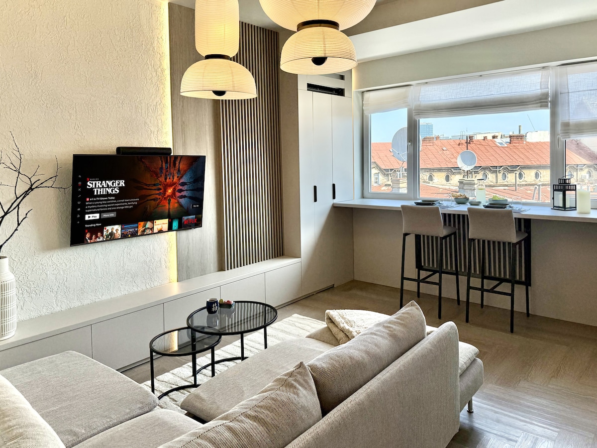 Experience the charm of our urban loft in the heart of the city! Enjoy the peace in our elegant bedroom, with wide windows that fill the room with sunlight, and settle into a luxurious marble bathroom. Located in a lovely neighborhood, this inviting space offers a fully equipped kitchen, a relaxing living area, and a small balcony. Perfect for the modern traveler who values style and comfort. Book your stay - delight in the simple luxuries and make this loft your personal hideaway.