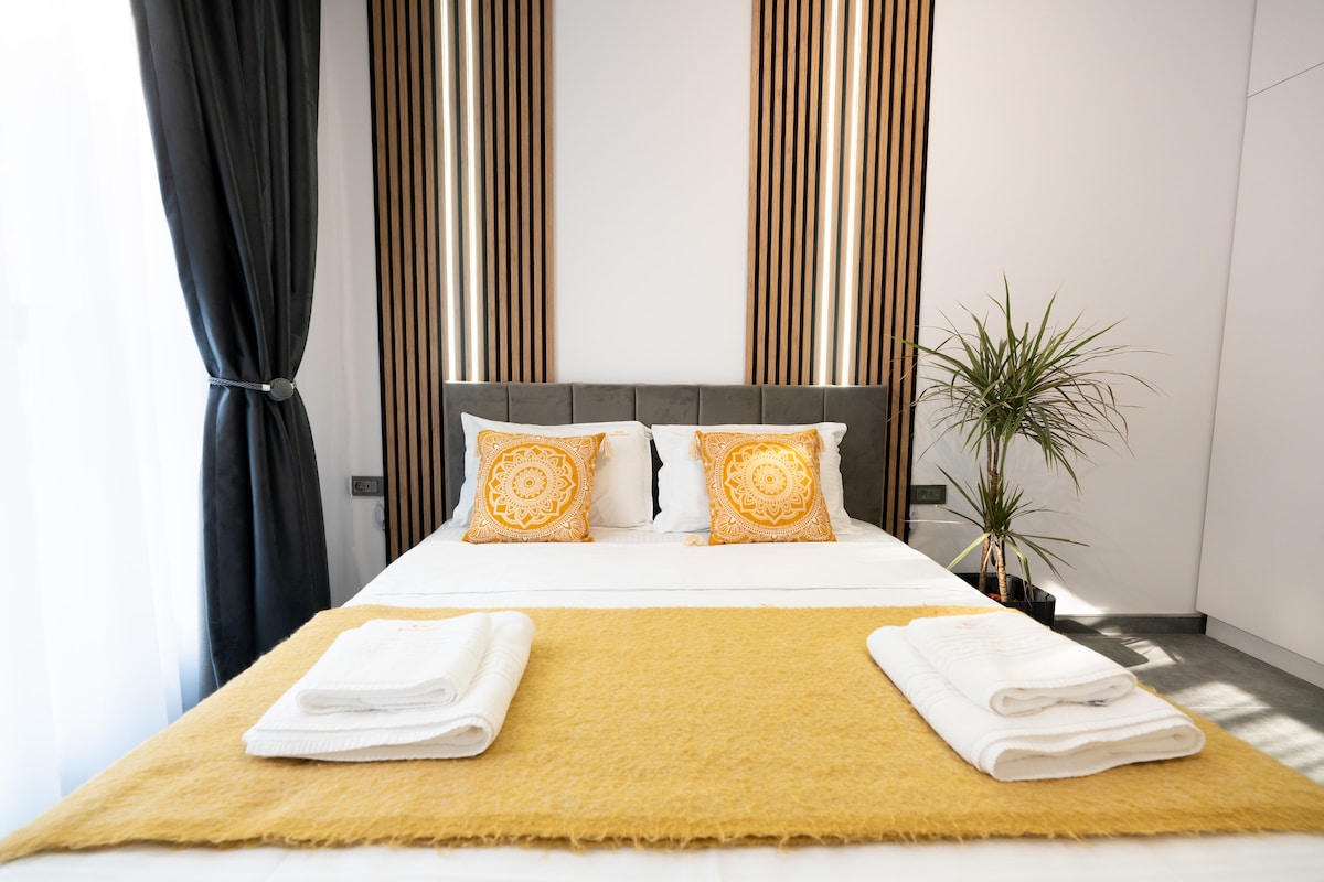 Experience the charm of our urban loft in the heart of the city! Enjoy the peace in our elegant bedroom, with wide windows that fill the room with sunlight, and settle into a luxurious marble bathroom. Located in a lovely neighborhood, this inviting space offers a fully equipped kitchen, a relaxing living area, and a small balcony. Perfect for the modern traveler who values style and comfort. Book your stay - delight in the simple luxuries and make this loft your personal hideaway.