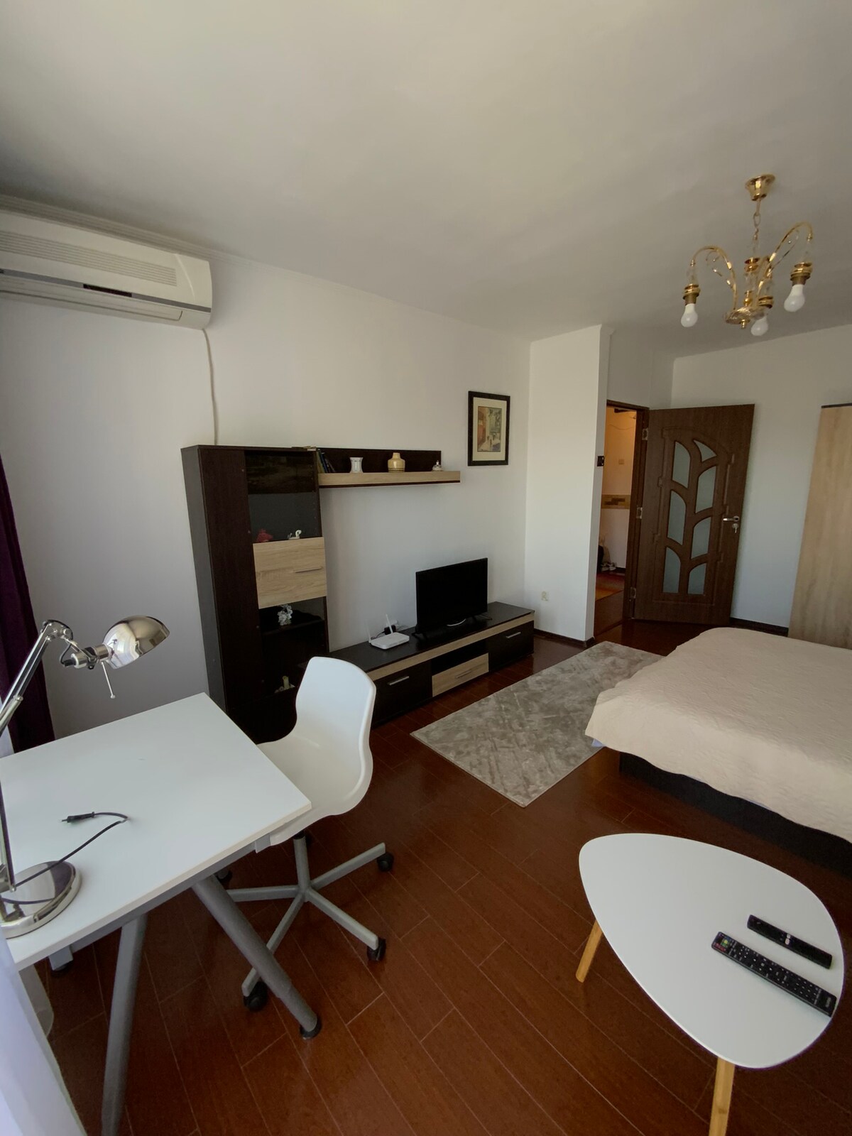 A brand new studio, fresh, clean, with a modern design and an amazing view over the city, located in an new residential complex. The studio is located at just 4 minutes walking from the 1 Decembrie 1918 subway station, next to the building we have supermarket Lidl, Auditorium Pallady and easy access to A2 highway. Also underground free parking is available during your stay. Inside the cozy studio we have smart TV+Netflix, free Wi-Fi, plus other items that are necessary to make your stay perfect.