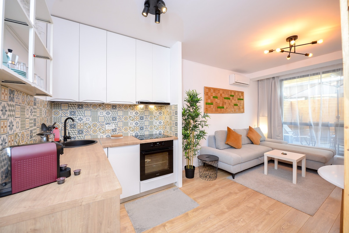 Bucură-te de o experiență stilată în această locuință situată central, studioul dispune de un pat dublu( 160/200) și o canapea extensibila(90/180), o bucătărie full echipată, mașina de spălat vase, mașina de spălat rufe, TV, aer condiționat. Ideal pentru 2 adulți și max 2 copii.