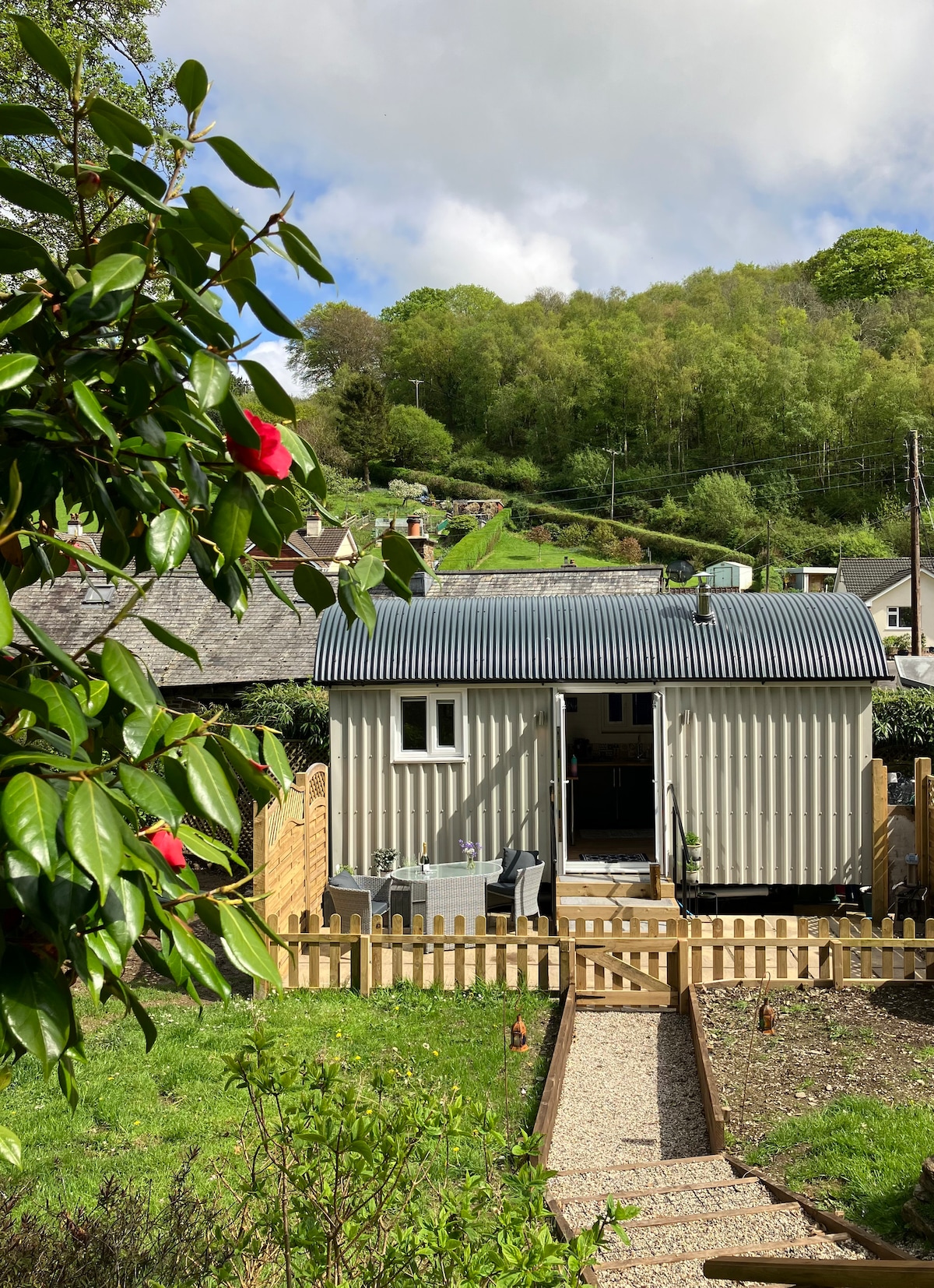 A quiet retreat in a picturesque valley, in the quintessential village of Berrynarbor. Set in a beautiful garden. Ideal for romance/relaxation, surfing and walking. Guests are welcome to explore the garden with its enchanting paths, that lead to a number of seating areas, including the hillside star gazing area, complete with fire pit. The Cwtch is within walking distance of the coastal path, the beautiful beach of Broadsands and Watermouth harbour. There are two pubs within walking distance.