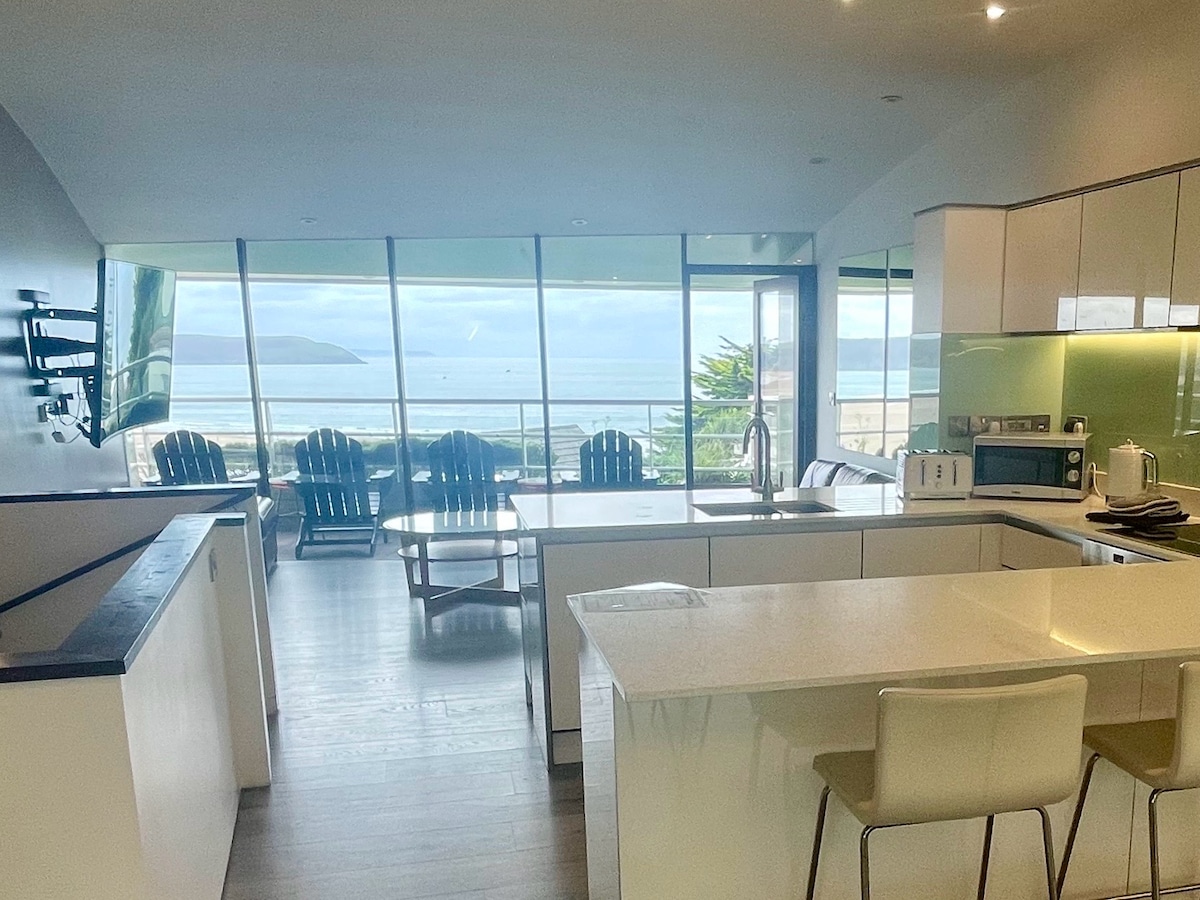 AMAZING VIEWS TO THE BEACHFRONT, ARGUABLY THE BEST IN WOOLACOMBE, NEXT TO THE BEACH. ANYDAY ARRIVAL EXCEPT SUNDAY (Xmas / NYE arrivals differ; please check calendar) Contactless check-in Minutes’ walk to village amenities Well behaved dog welcome - no cats Dog friendly 3 mile sandy beach Iconic Surfing reserve Business grade Wi-Fi (no speed drop for multiple users) SW balcony to the shore & rolling waves Large rooms Free Underground parking and CCTV EV (Type 2) PAYG charger 65" Smart TV
