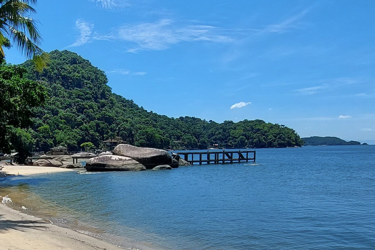Bem-vindo à Casa Pé na Areia na Praia da Estopa, na Ilha de Jaguanum, próxima a Itacuruça. Localizada no centro da praia, nossa casa oferece uma estadia excepcional para famílias e casais em busca de tranquilidade e diversão à beira-mar. Com o mar calmo e seguro, é o lugar perfeito para crianças brincarem enquanto os adultos relaxam na areia. Aproveite para mergulhar nas águas cristalinas ou simplesmente relaxar sob o sol tropical. Com internet Starlink de alta velocidade para home-office!