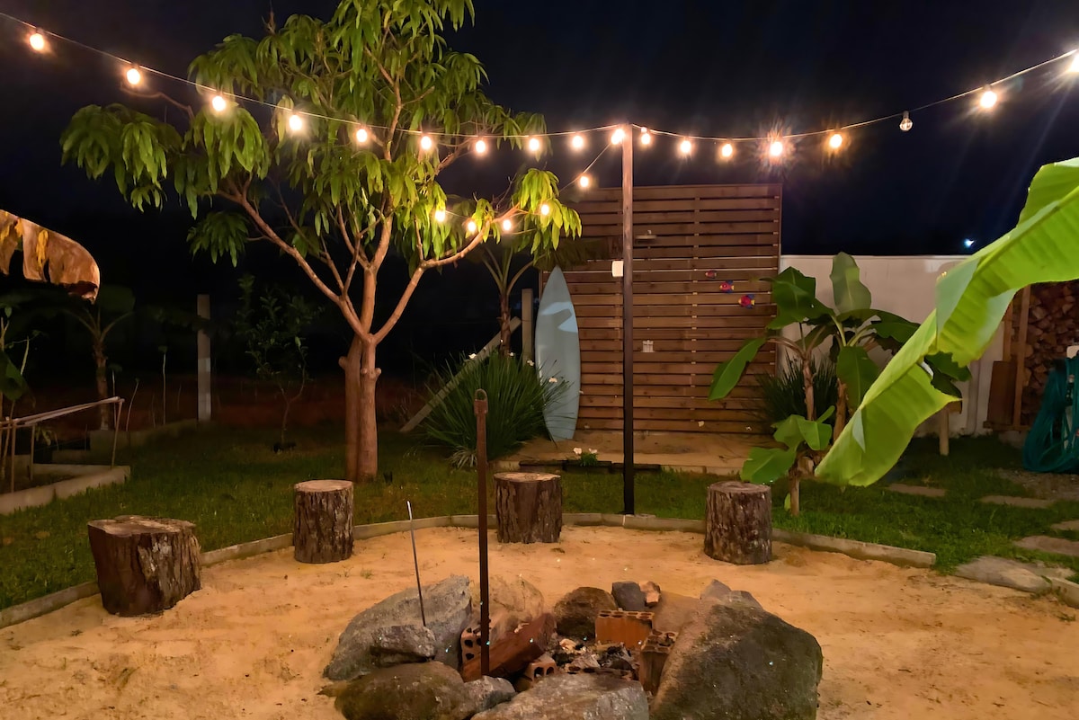 Desejam um rio, uma praia, passear em bicicleta, andar em bote, pescar, fazer uma comida campeira, um churrasco e curtir uma fogueira a noite e ainda conectados ao mundo?... Tudo isso vocês encontram na nossa casa que esta em um Paraíso rodeada pela fauna e flora da Mata Atlântica ao lado do rio e a 150m do mar....