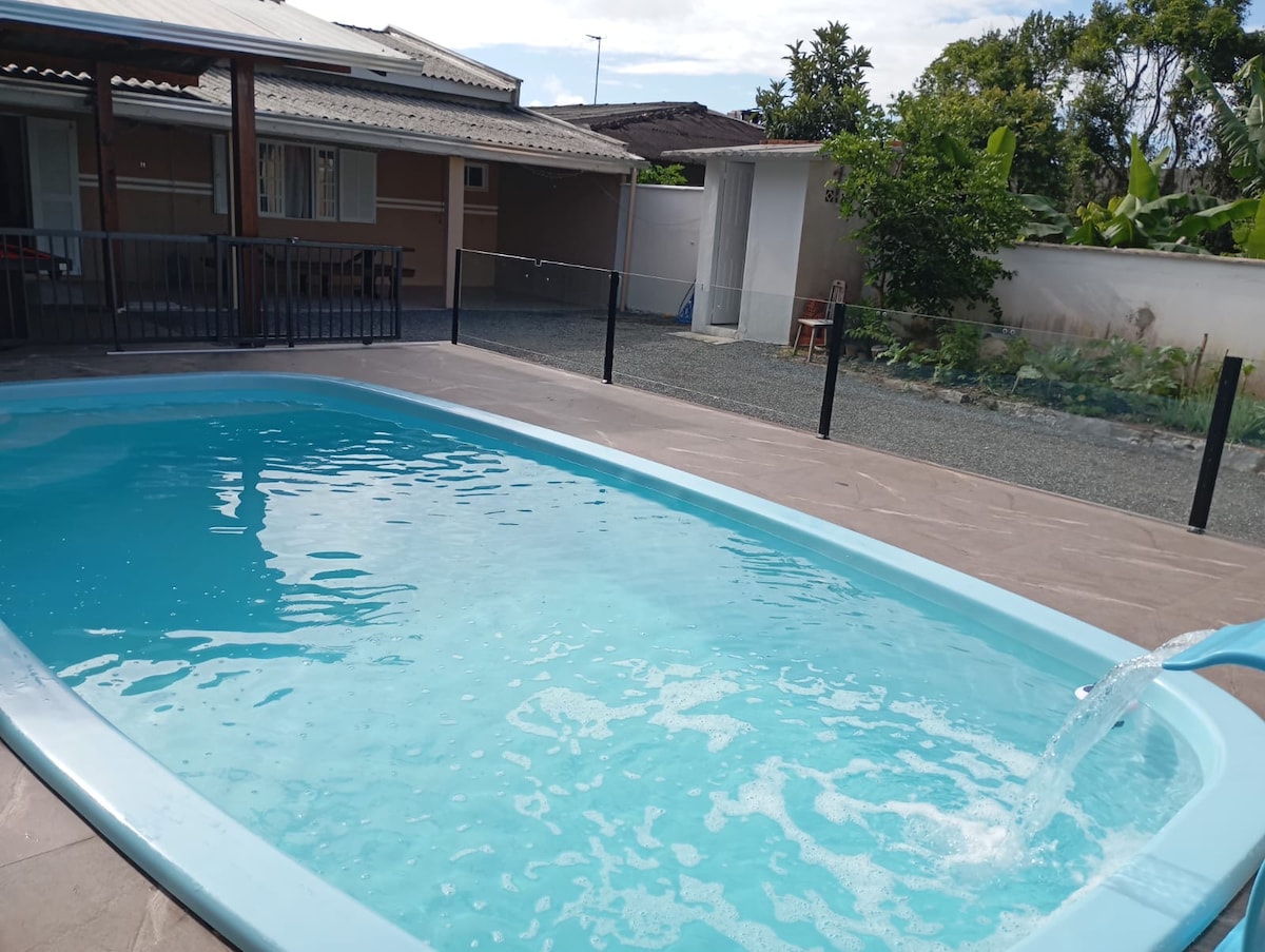 Casa ótima para seu lazer, aconchegante, espaçosa e completa. Uma boa churrasqueira para assar carne, mesa de sinuca para jogar com os amigos, spa de hidromassagem ( jacuzzi ) para relaxar as costas e uma piscina para se refrescar do calor de 30º do litoral. Todos os quartos são com ar-condicionado, e ventilador de teto na cozinha e na sala, ambiente espaçoso para acomodar até 15 pessoas tranquilamente. Está casa fica a 1km da praia da Enseada, São Francisco do Sul-SC. Faca já sua reserva 🙋🏻♂️