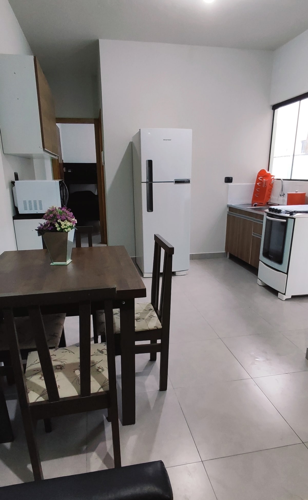 Apto em lugar tranquilo com todos equipamentos necessários . 1 quarto com cama de casal e1 bicama condicionado. Banheiro completo, cozinha equipada com micro ondas, geladeira, fogão tv e armários cafeteira liquidicador mesa e cadeiras ventilador . divisora entre cama de casal e bicama .Piscina compartilhada, churrasqueira. Não são fornecidos roupas de cama e mesa apt p/ 4 pessoas. wi-fi