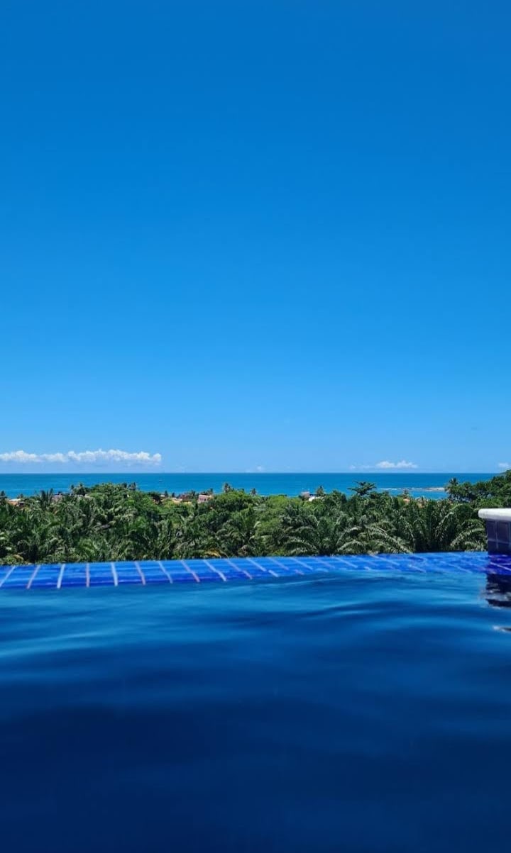 No alto do Morro de São Paulo, o Canto das Águas é um refúgio com vista para o mar e o pôr do sol de tirar o fôlego. Da praça central até aqui é uma caminhada de 15–20 min (1km), com algumas ladeiras e degraus. A recompensa é toda beleza natural exclusiva e privacidade. Ideal para casais, amigos ou viajantes solo que querem acordar com o azul do oceano. Estamos a 80m acima do nível do mar, com acesso do condomínio às trilhas para as praias Porto de Cima, Ponta da Pedra, Praia da Argila e Gamboa.