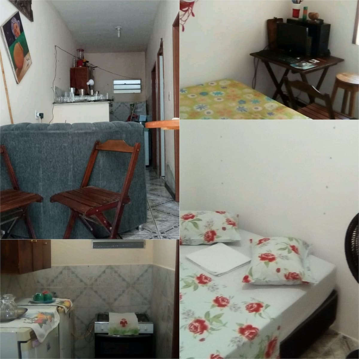 O conjugado tem 1/4 c/ cama casal; sala conjugada c/ beliche e colchão avulso. Localiza-se na movimentada rua da lagoa, com barzinhos, músicas, restaurantes, padaria, mercados, academia e etc. Local seguro, plano e de fácil acesso. Fica a 12 minutos das praias 1 e 2. Nesta rua você interage com moradores e paga o mesmo preço de morador.