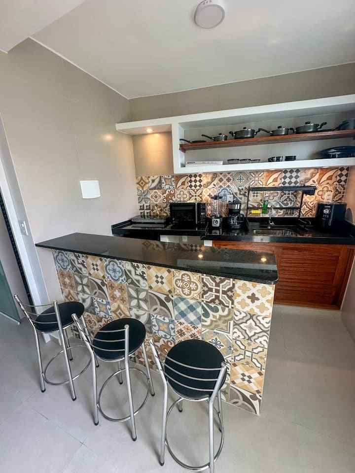 Espaçoso mini apartamento, tipo loft, recém construído e decorato (dezembro 2023), totalmente equipado; cozinha completa, cama queen-size, Smart TV 43`, ar condicionado, e wi fi. Perfeito para quem curte vida de praia, localizado na terceira praia a 1 minuto do mar, é o lugar certo para ficar em Morro; perto de supermercados, bares, restaurantes e ao agito da segunda praia, mas num lugar tranquilo para descansar.