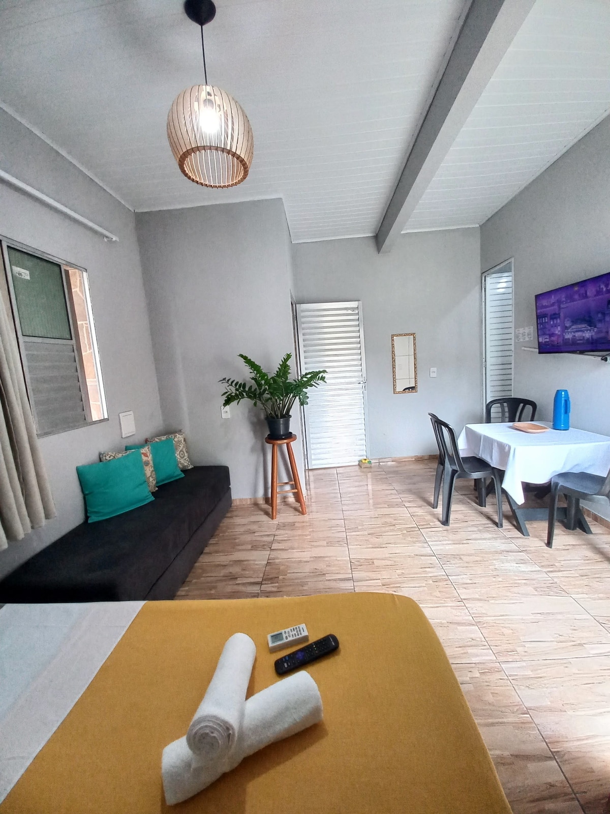 Luminoso mini apartamento, tipo loft, recém construído e decorato (dezembro 2023), totalmente equipado; cozinha completa, cama queen-size, sofá cama, Smart TV 43`, ar condicionado, e wi fi. Perfeito para quem curte vida de praia, localizado na terceira praia a 1 minuto do mar, é o lugar certo para ficar em Morro; perto de supermercados, bares, restaurantes e ao agito da segunda praia, mas num lugar tranquilo para descansar.