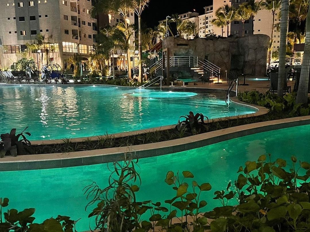 CURTA A EXPERÊNCIA LUXUOSA AO FICAR NESSE LUGAR. Tenha dias de tranquilidade no RESORT onde tudo é perfeito. Décimo quinto andar, vista Playground. Próximo da Praia do Atalaia, o resort oferece uma variedade de serviços e atividades como: Parque aquático, restaurante, boliche, trapézio, academia, tênis, piscina, skate, spa, minigolfe, tiro com arco, salão de jogos, TV a cabo e muito mais. Apartamento para 4 pessoas. Quarto com cama de casal e sofá cama na sala (ambos com ar condicionado)