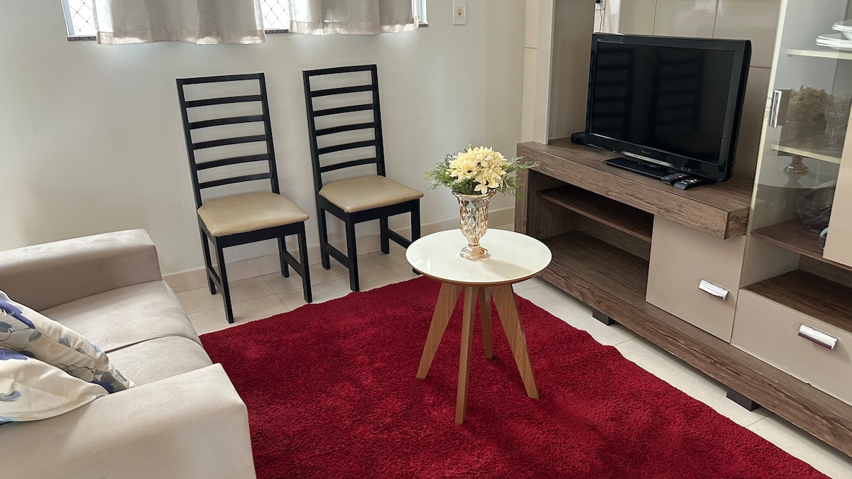Desfrute do confortável apartamento com estilo de casa. Lindamente decorada, pensado pra você, comportam até 6 pessoas, com atadores de rede, mais quatro camas de solteiro, e uma cama Queen. Apart localizado no final do prédio, entrada pela garagem. Você pode usufruir de uma sala iluminada, perfeita para relaxar e reunir a família, dispõe de Cozinha e sala de jantar em conceito aberto. Dois quartos espaçosos com amplos armários para seus pertences. Banheiro equipado com acessórios.