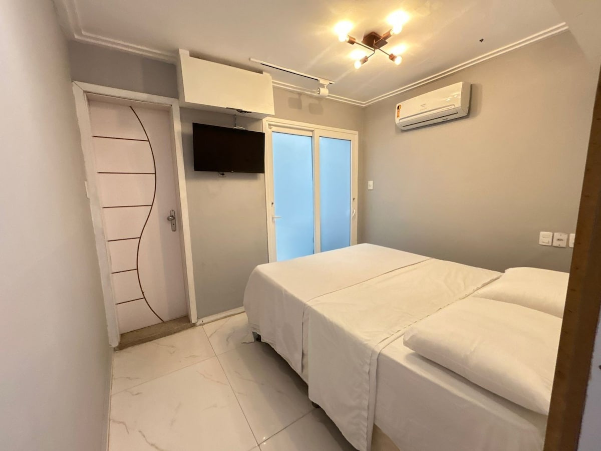 Apartamento aconchegante com dois quartos no bairro mais antigo de Belém. Perto do Centro Histórico e do Mangal das Garças, essa casa fica no terceiro andar e tem um ótimo terraço com churrasqueira e chuveiro para aproveitar o calorzinho gostoso dessa cidade. Quartos com ar condicionado (sendo uma suíte) e o outro um quartinho bem pequeno porém suficiente para uma pessoa. Na sala tem um sofá cama e ar condicionado, deixando assim 04 pessoas confortáveis no ambiente.