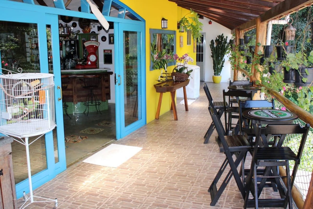 The Orange House of Mamanguá is that special place that we never forget. A cozy and comfortable house with a stunning view by the ocean immersed in the only tropical fjord of the world! Here time passes more slowly & things take on a new meaning. IMPORTANT: Access only boat, there is no market or mobile signal & power outages/wifi can happen. We provide kayaks to explore this paradise! The kitchen is equipped, the living room is large & integrated to an external deck. Rooms are small & cozy.