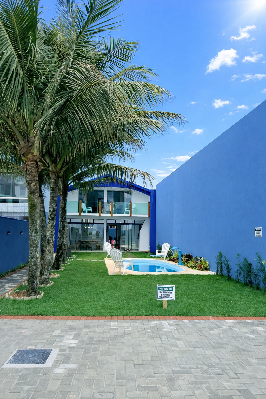 房子前面有树林 蓝色海岸浴场-游泳池