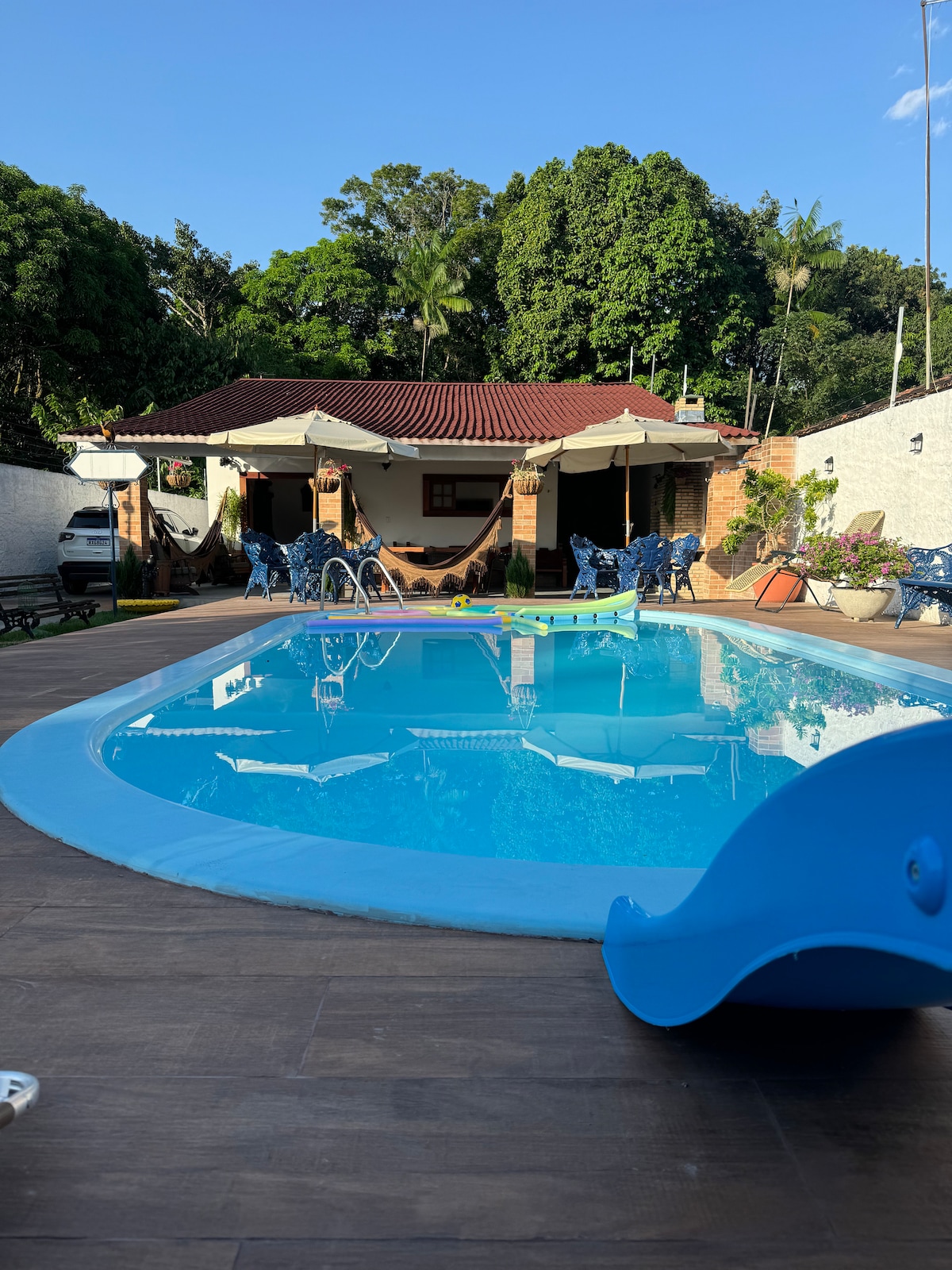 Casa muito confortável e espaçosa na Praia do Paraíso em Mosqueiro, com WI-FI Grátis, ampla varanda para redes, 4 quartos (sendo 3 suítes), toda mobiliada, ampla sala de estar e jantar, garagem coberta para 6 carros e moto, área de churrasqueira, piscina (com proteção para crianças e cascata), mesa de bilhar e banheiro externo. Acesso rápido para orla e praia com distância de 200m. Local ideal para levar família e ter tranquilidade. Tem concertina ao redor da casa e câmeras para total segurança.