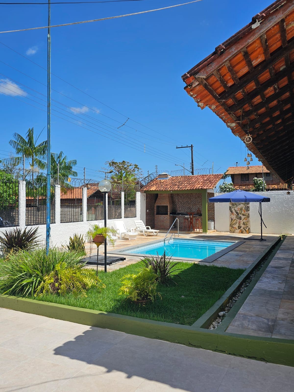 Linda casa em Mosqueiro c piscina, jardim, garagem ampla, churrasqueira mineira c fogão a lenha, cozinha ampla completa, 3 quartos sendo 1 suite (reserva p 12 pessoas), armador de rede em todos os cômodos e varanda, SPLIT nos quartos, roupas de cama e banho, cerca elétrica e monitoramento 24hs c sensor, Wi-Fi , a 40 metros da praia do MURUBIRA (melhor localização d Mosqueiro). Ambiente aconchegante, ampla e ventilada. Mesa de bilhar. Cinema (projetor). Estação de academia, caixa de som c karaokê
