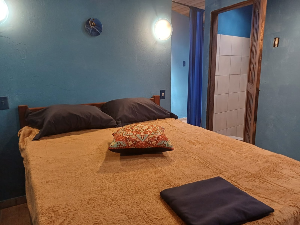 La chambre Mico-Leão-Dourado rend hommage au petit singe doré emblématique du Brésil. Intime et lumineuse, elle accueille jusqu’à deux personnes dans un cadre chaleureux, décoré de tons ensoleillés et naturels. Dotée d’un lit confortable et d’une ventilation naturelle, elle offre un séjour paisible au cœur de la nature. À deux pas de la plage de Baía do Sol, c’est un cocon idéal pour se reposer et se reconnecter à l’essentiel.