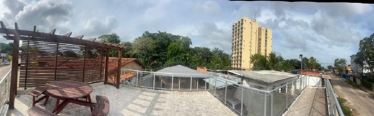 ⚠️Local de difícil acesso. Carros pequenos podem atolar 🌿Venha desfrutar da tranquilidade neste aconchegante chalé ecológico a poucos metros da praia do Marahú, na bucólica Ilha de Mosqueiro em Belém do Pará. O andar superior é um Loft com lavabo, embaixo cozinha/banheiro Um refúgio em meio à Natureza com uma linda e exuberante praia quase isolada, ideal para temporadas familiares e memórias incríveis. Excelente pra quem gosta de aventura e rusticidade, além de sossego e tranquilidade.