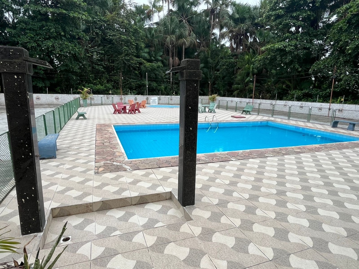 O Sítio Bonanza, em Benfica, é um refúgio rodeado por áreas verdes e açaizais. Aproximadamente 30 km do Aeroporto de Belém, com acesso totalmente asfaltado, é o lugar ideal para descansar, reunir família e aproveitar a natureza com conforto. No imóvel: * Varanda ampla * Sala de estar com TV * Copa-cozinha espaçosa e equipada * 3 quartos (1 suíte) * 2 Banheiros sociais * 1 Lavabo * Piscina privativa * Área de churrasco * Redário * Jardim e quintal espaçoso Natureza e conforto para sua família