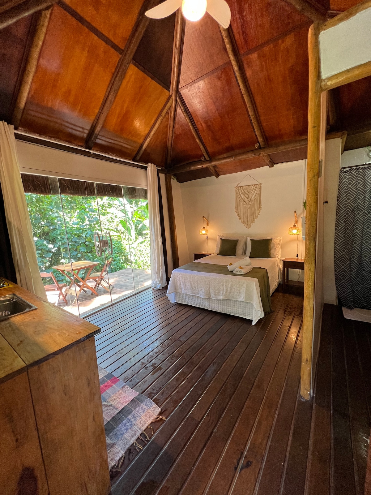 A Cabana da mata não é apenas um aluguel de temporada, é um daqueles lugares que você visita e não esquece. A cabana tem uma vista sensacional (para a Mata Atlântica típica do Brasil). Com grandes janelas que logram conectar o espaço interior com a natureza ao redor, é um local tranquilo e silencioso. Ideal para casais mas caso sejam 3 pessoas, temos um sofá cama na sala.