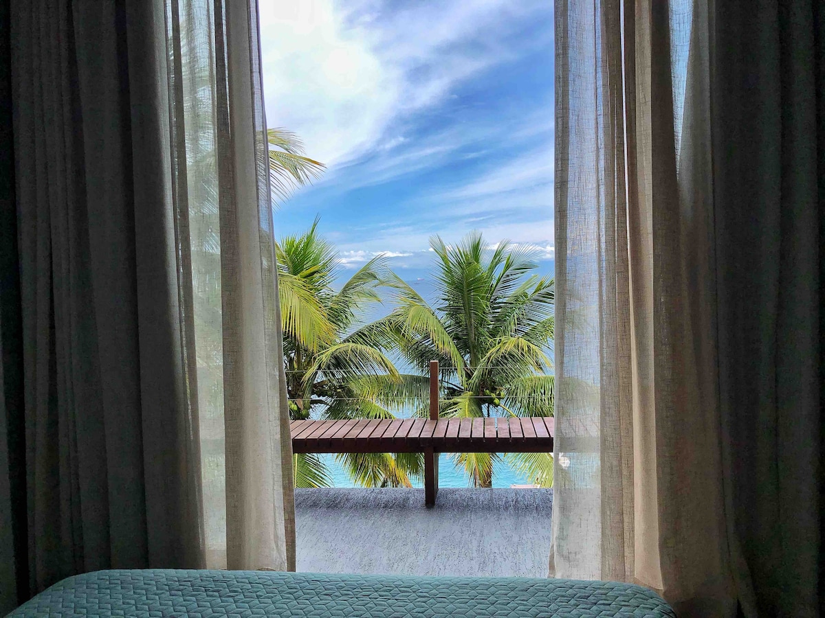 Possui varanda privada de frente para o mar, rede e cadeiras de madeira, banheiro com excelente ducha aquecida a gás, ar condicionado e frigobar. Ideal para um casal e acomoda mais uma pessoa.