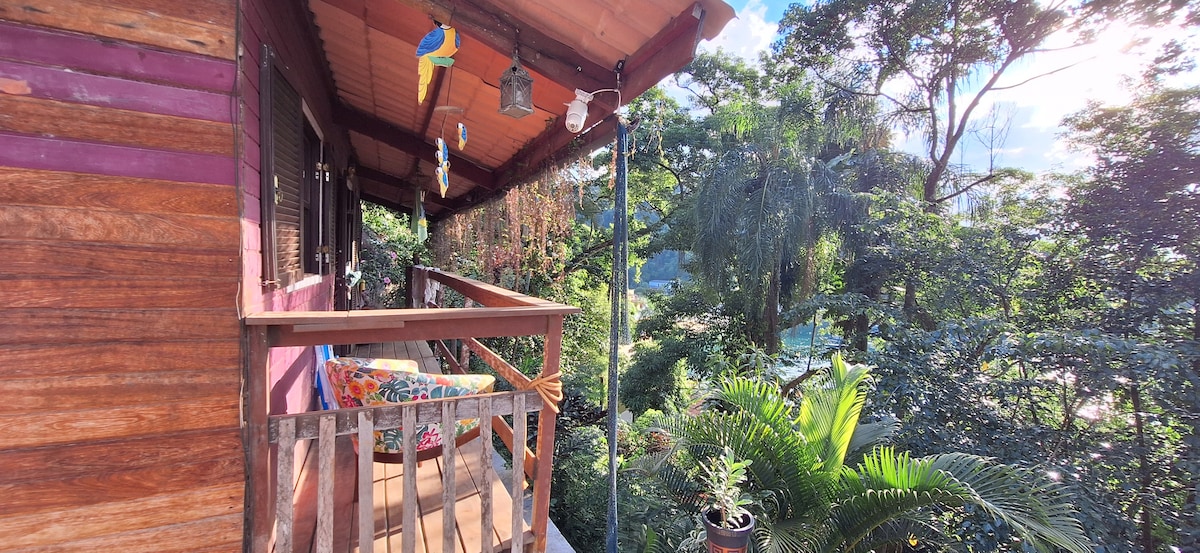 Treetop Chalet provides elegant and traditional accommodation, situated within beautiful Atlantic rainforest in Araçatiba, Ilha Grande. This private and secluded location is 150m from the nearest beach (Praia da Cachoeira). It is completely self-contained, with full kitchen, private bathroom and a deck with breathtaking view of the trees towards the sea. NOTE: This property (including the chalet and main house) has just been completely redecorated.