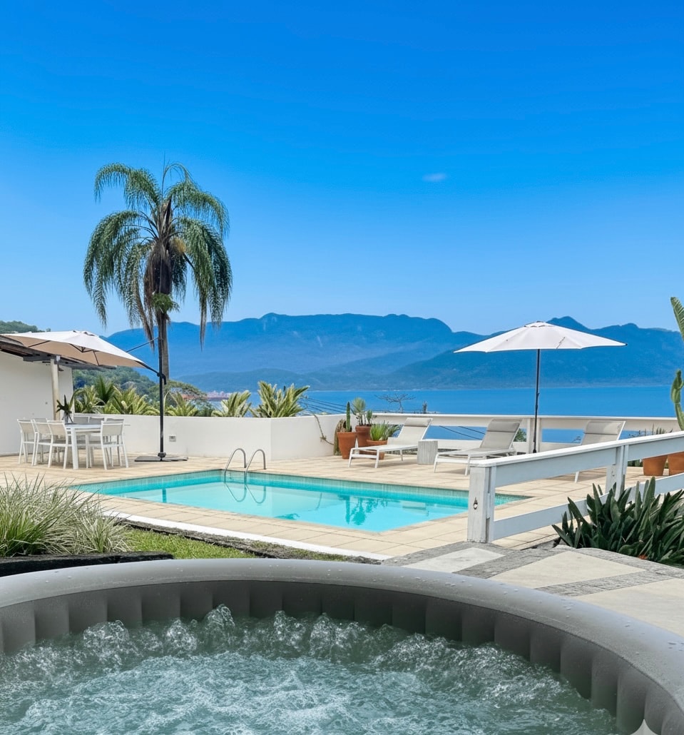 No Porto Bali Resort você vai desfrutar de uma excelente estrutura como: piscina de borda infinita para o mar; jacuzzi, piscina aquecida; piscina infantil; bar de piscina; restaurante; brinquedoteca; balanço a beira mar; saunas; SPA (área de massagem a beira mar); academia; quadras de tênis e poliesportiva. Estamos na entrada de Angra e perto dos melhores pontos turísticos, Ilhas Botinas, Praia do Dentista e Ilha Grande.