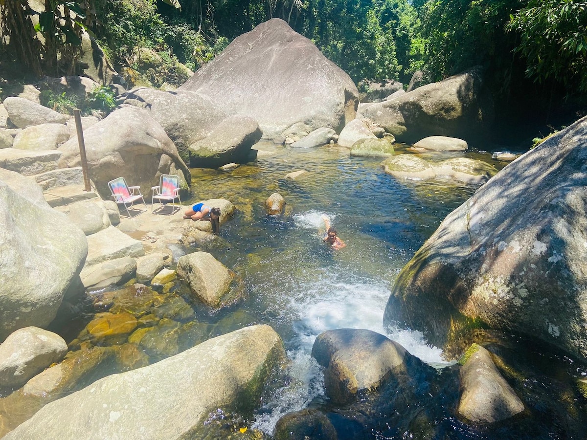 Casa tipo colonial , decorada com detalhes, visando conforto e bem estar. Local seguro, tranquilo e familiar , onde se ouve o conto dos pássaros .cozinha privada