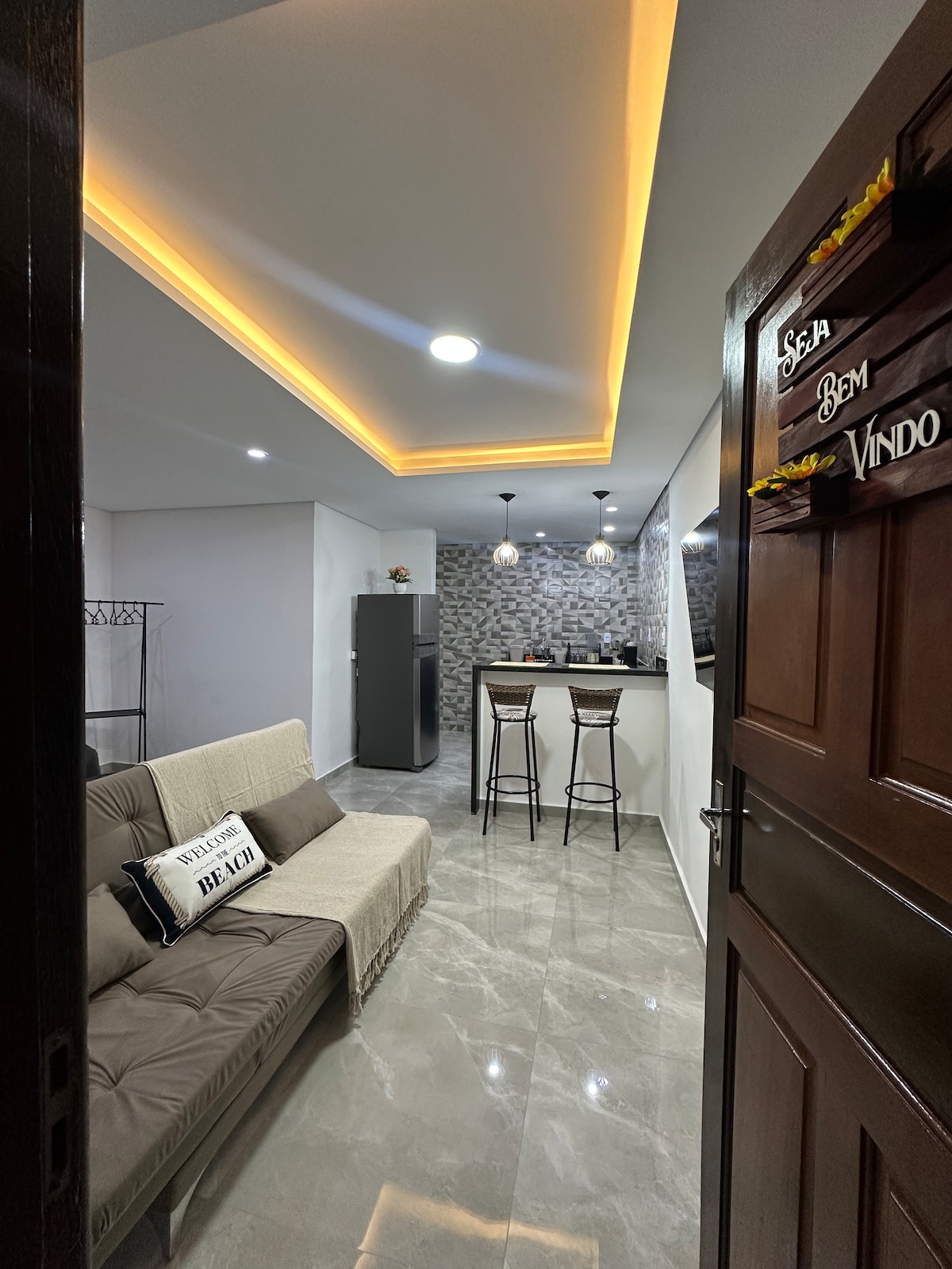 A melhor localização!! Central e a pouco passos da praia do Abraão. Suíte com cozinha, área externa com chuveiro e churrasqueira, tudo privativo. Imperdível!!! TV, WI-FI, 1 cama casal e 1 cama solteiro super aconchegantes (fornecemos roupa de cama e banho) AR condicionado split inverter e ventilador de teto. A entrada é individual . Ideal para casal e/ou casal com filho devido ao espaço circulante do dormitório. Perfeito para relaxar e aproveitar o que a Ilha Grande tem de melhor.