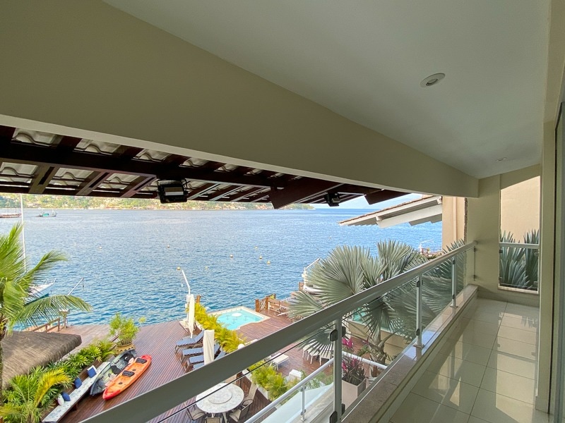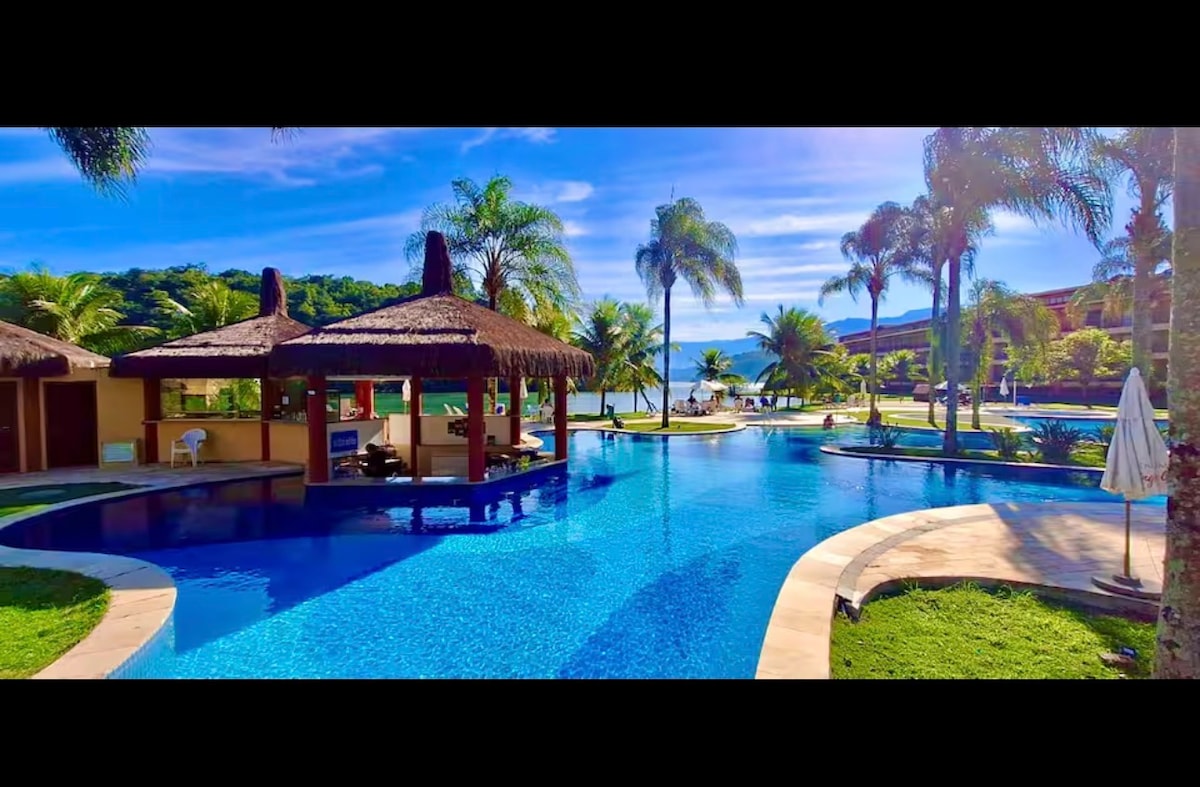 Relaxe neste espaço calmo e cheio de estilo. Um paraíso a beira mar que combina conforto e natureza exuberante. Nosso apartamento é moderno, no estilo clean, varanda gourmet com vistas deslumbrantes da enseada e da montanha, duas suítes confortáveis e ambiente social com sala finamente decorada com sofá de couro e cozinha americana. As opções de lazer incluem piscinas com bar molhado, restaurante, lojas, quadras de esporte e marina para passeio de barco pela deslumbrante costa de Angra dos Reis.