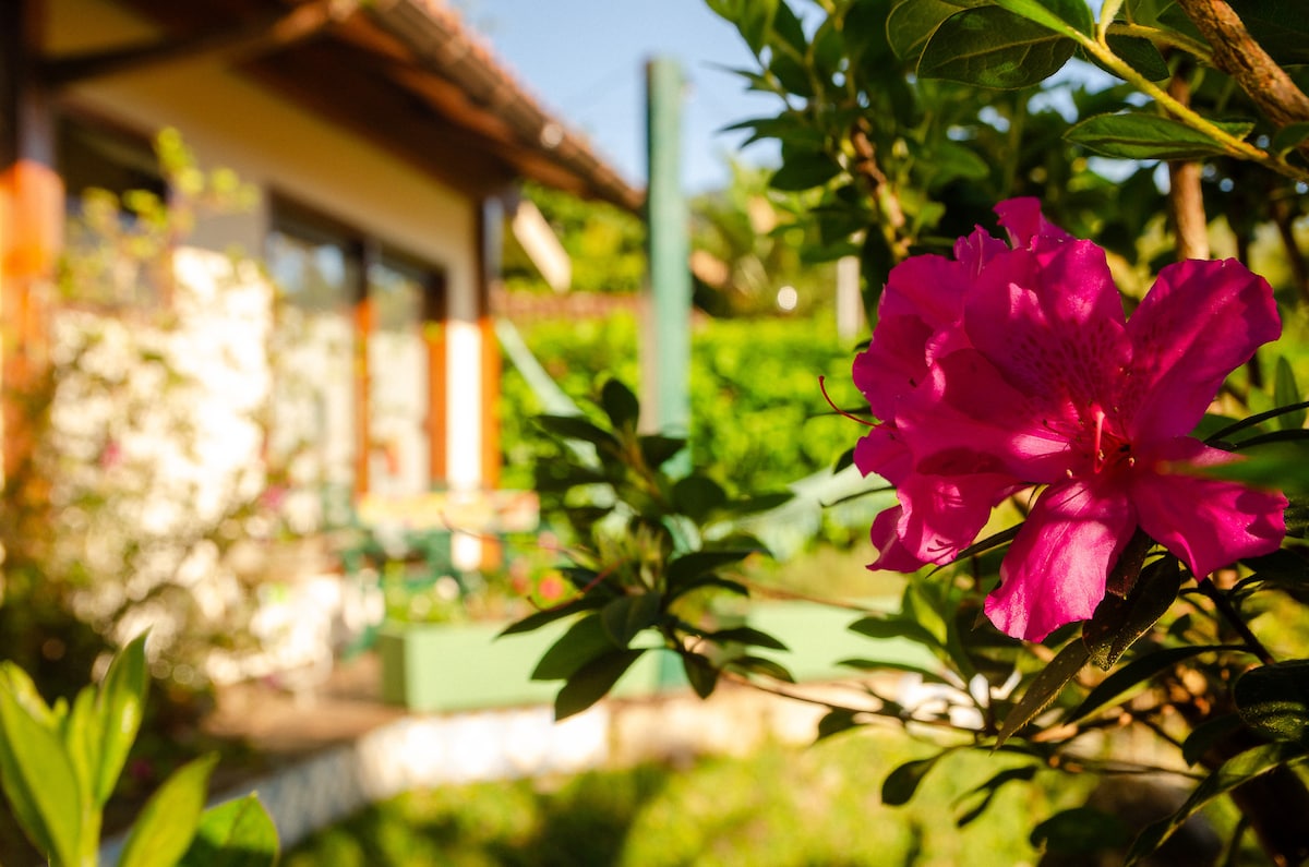 No meio da floresta, entre os pássaros, esquilos e macacos se encontra a Casa do Beija-Flor. Privacidade absoluta, a entrada e todos os espaços descritos são do uso privado para quem se hospeda aqui! tem um amplo deck externo com bancos, mesa e rede para descansar e contemplar as maravilhas da natureza. Imagine acordar com o som da cachoeira, respirando o ar fresco do lugar. Na chegada temos uma trilha curta com muito verde. Venha descansar no meio da natureza típica do Brasil.