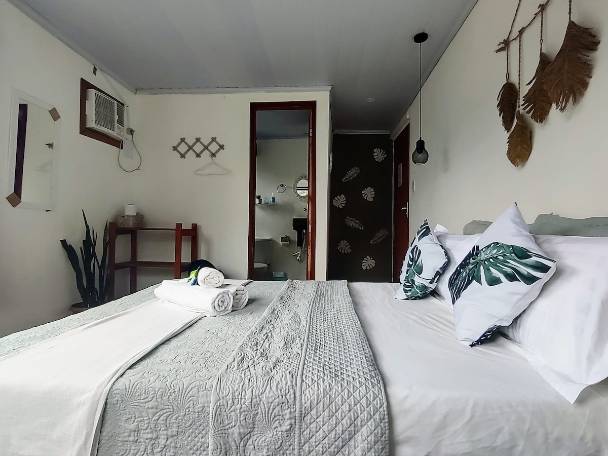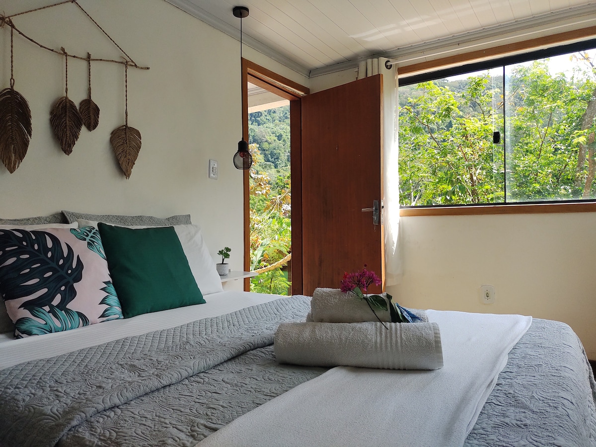 Suite de lujo, Totalmente independiente y privada, con vista a la maravillosa mata Atlantica Ven a descansar con el Sonido del Rio y despertar con el canto de los pajaros y el olorcito fresco de la Floresta Tenemos a disposicion vajilla y cafetera para que los huespedes puedan prepararse su propio cafe en nuestra suite! Calidad de hotel con la facilidad, confianza y experiencia de Airbnb! De facil acceso en el corazon de Abraao, Capital de Ilha Grande Lengua de recepcion: Espanol, Portugues y A
